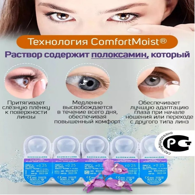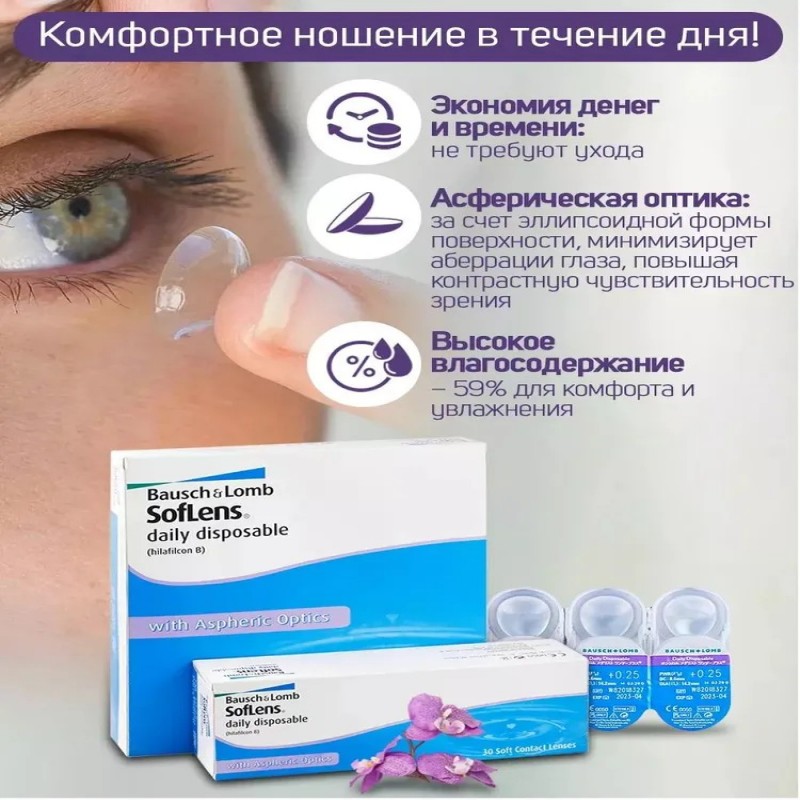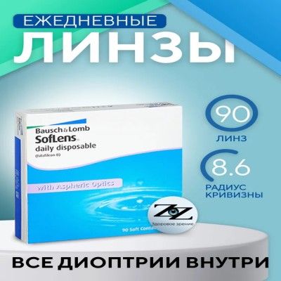 КомплектацияКонтактные линзы Bausch and LombSoflens Daily Disposable 90 шт.