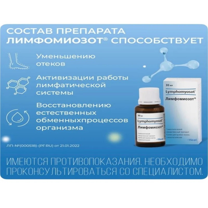 улучшение естественного лимфодренажа и уменьшение застоя лимфы, в т.ч. связанного с хроническим тонзиллитом и лимфаденитом неспецифической этиологии в комплексной терапии.