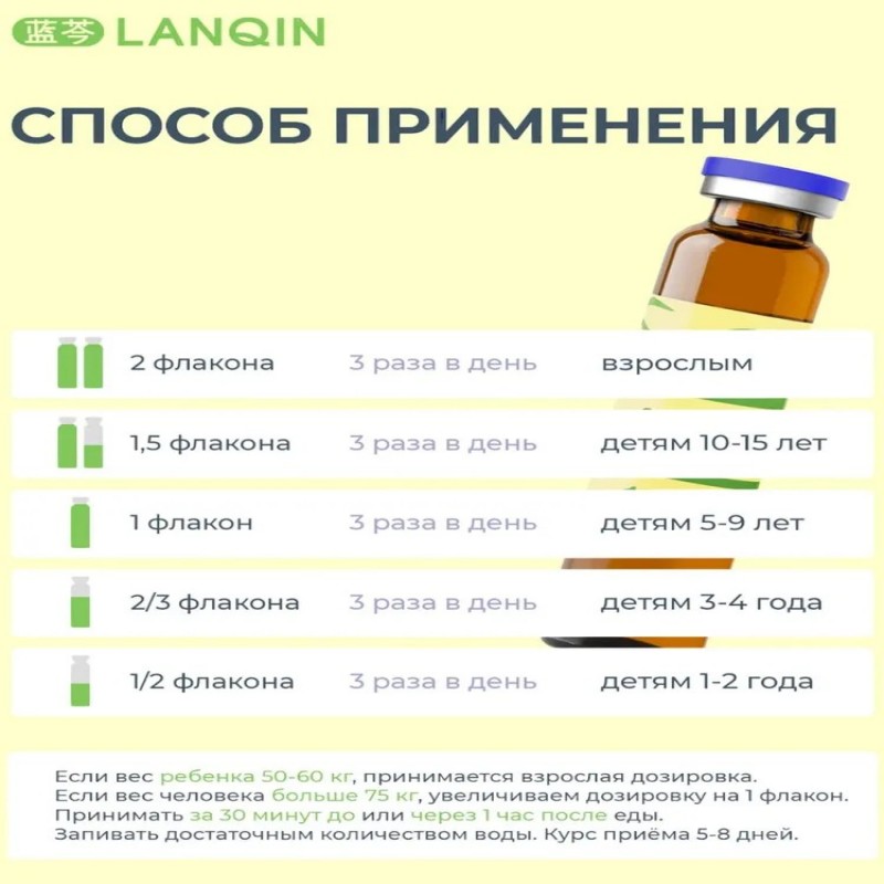 Неспиртовую микстуру Ланьцинь в Китае называют природным антибиотиком. Препарат обладает бактериостатическим, противовирусным, противовоспалительным, жаропонижающим, болеутоляющим и противопростудным действием.
