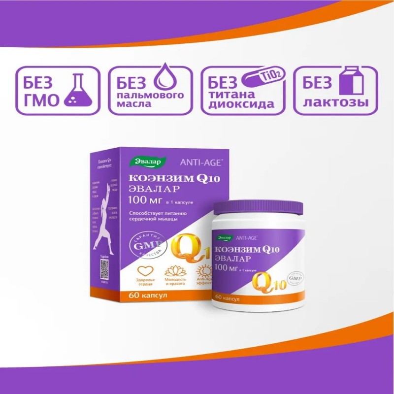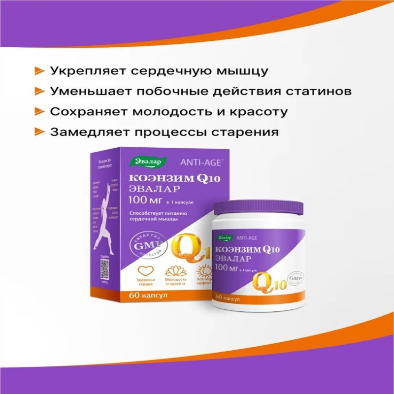 Коэнзим Q10 100 мг от компании Эвалар способствует:
