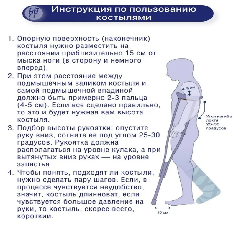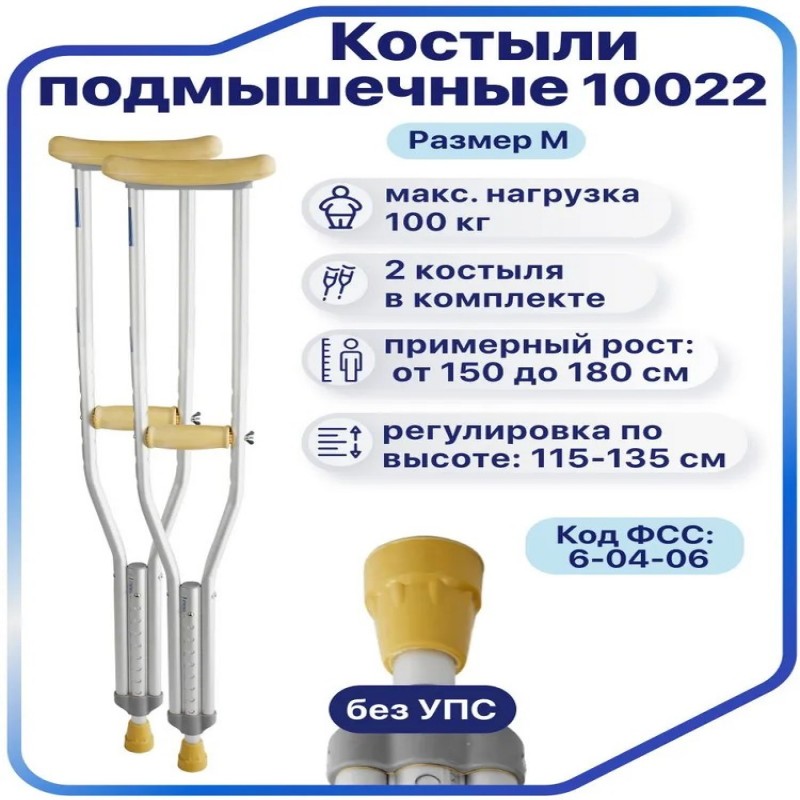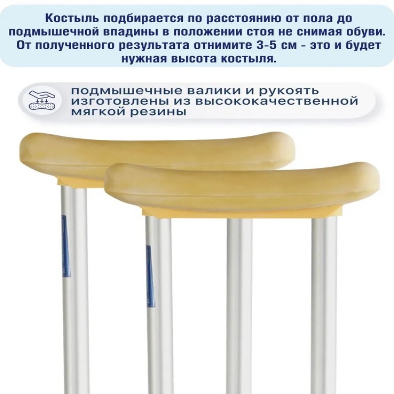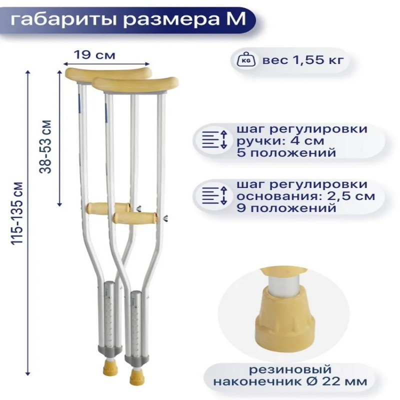 Костыли подмышечные взрослые для роста 150-180 см (размер М), регулиру