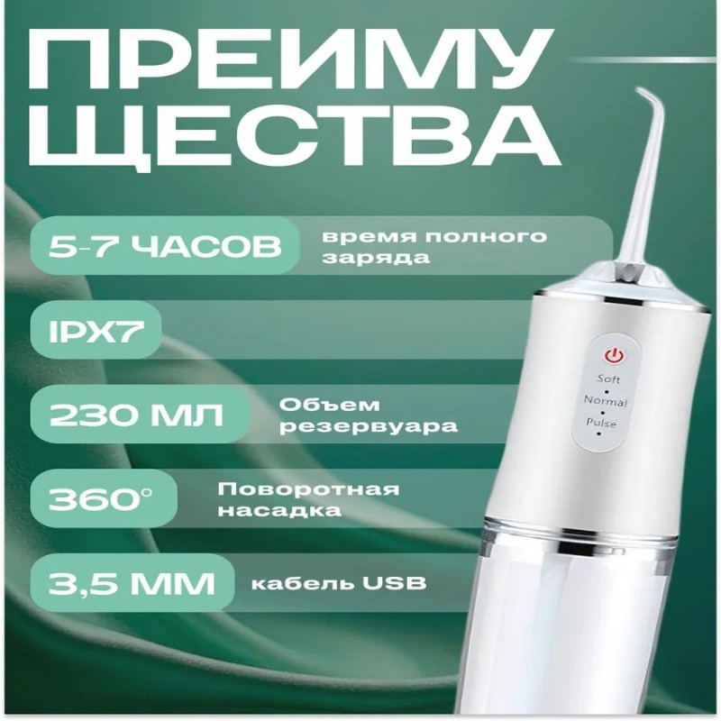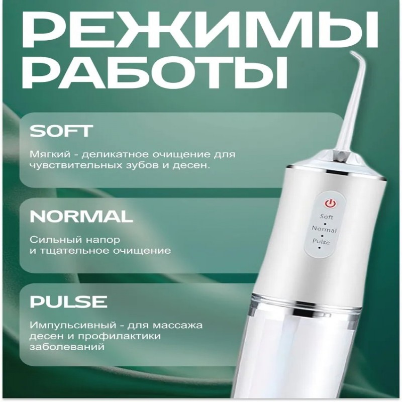 Ирригатор для полости рта с 4 насадками - это идеальное решение для тех, кто хочет сохранить здоровье своих зубов и десен. Он легко помещается в кармане или сумке, что делает его удобным для использования в любое время дня и ночи.Ирригатор для полости рта с 4 насадками - это мощный инструмент для гигиены полости рта. Он помогает удалить остатки пищи и бактерии из труднодоступных мест, что снижает риск развития заболеваний полости рта. Кроме того, он обладает функцией регулировки давления струи, которая позволяет выбирать необходимую степень мягкости или силы при использовании устройства.