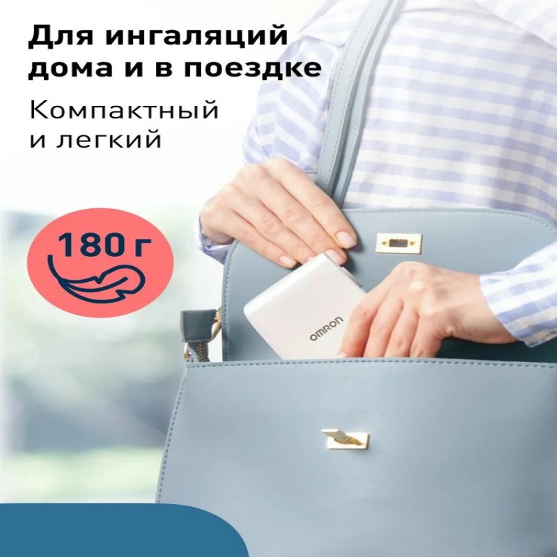 Ингалятор небулайзер портативный Oмрон весит всего 180 г, помещается в рюкзаке или маленькой сумочке, поэтому пригодится дома, на работе или в поездках. Почти бесшумный ингалятор (уровень шума 45 дБ) не мешает окружающим людям и не пугает ребенка. К тому же ингаляция не отнимает много времени – всего несколько минут, что не утомит малыша. Поэтому C21 может использоваться как ингалятор детский и ингалятор для носа при простуде. Резервуар объемом 10 миллилитров подойдет для всей семьи, так как ингаляции можно проводить одну за другой.