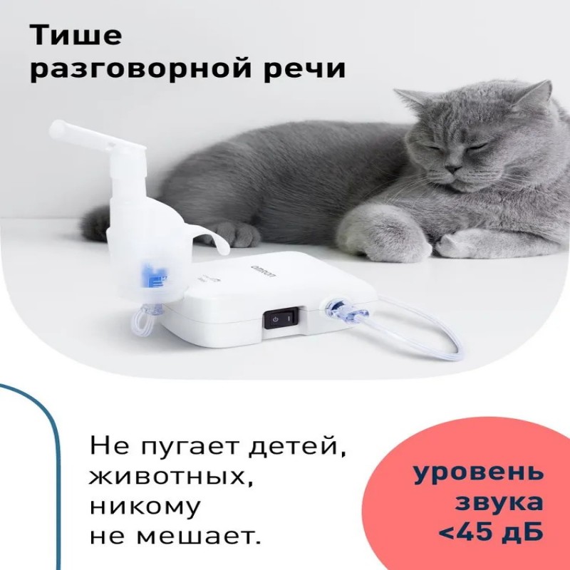 За устройством очень просто ухаживать. Все съемные детали: камеру для небулайзера, маски для ингалятора, насадки для носа и рта можно промывать в воде с моющим средством, дезинфицировать, а также кипятить (за исключением масок).