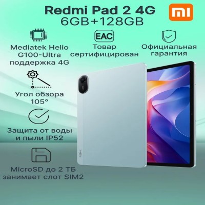 Xiaomi Планшет Redmi Pad 2 4G LTE, 11" 6 ГБ/128 ГБ, зеленый