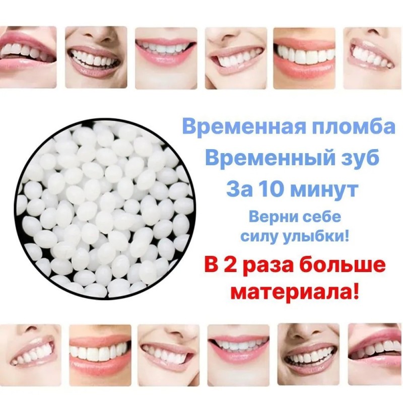 Термопластичные бусины из стоматологического материала, отличный вариант для временной пломбы и даже полноценной замены целого зуба.