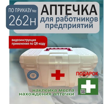 Аптечка по новому приказу Минздрава № 262н от 24.05.2024 для оказания первой помощи работникам предприятий и подарок (наклейка для обозначения места нахождения аптечки)