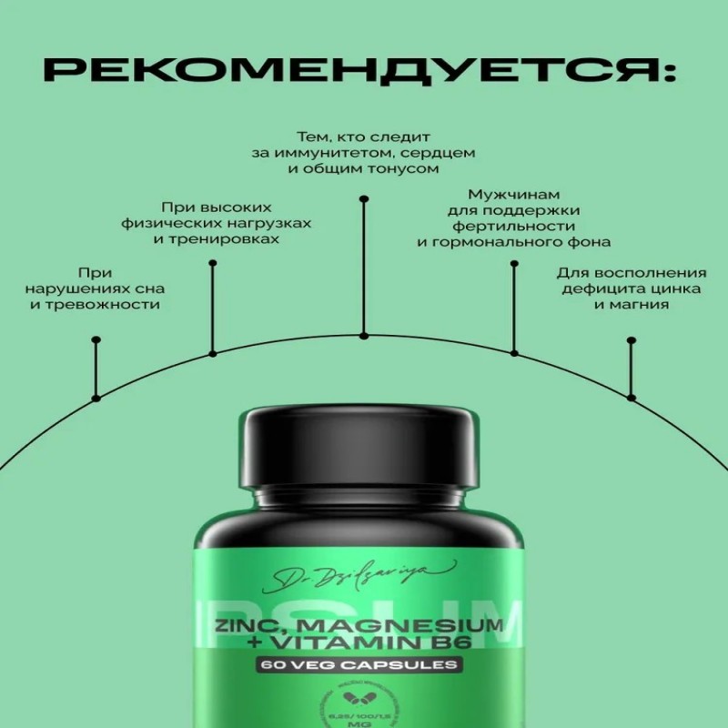 Цитрат магния, капсула растительная (гидроксипропилметилцеллюлоза), Цинка цитрат, Магниевые соли стеариновой кислоты, Кремния диоксид, Пиридоксина гидрохлорид