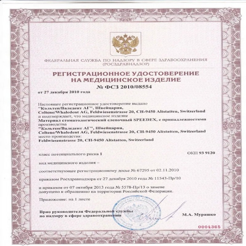 Speedex light body (Спидекс Лайт Боди) - полисилоксановая слепочная масса - 2-й слой. Производитель: Coltene, Швейцария. Оксасил Oxasil Описание: