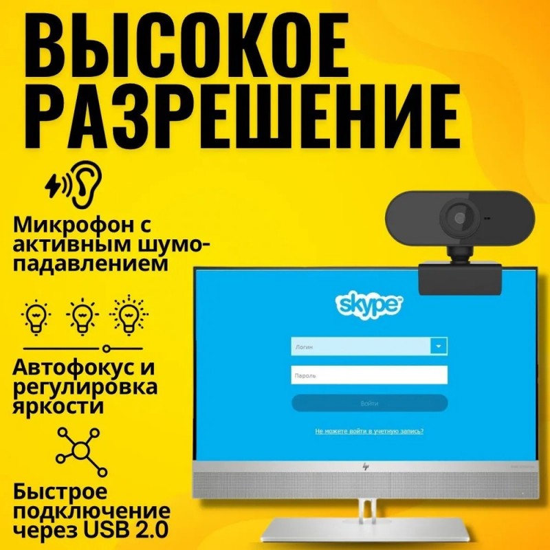 Web-камера с микрофоном Веб камера для ПК 1080 с микрофоном, черный ма