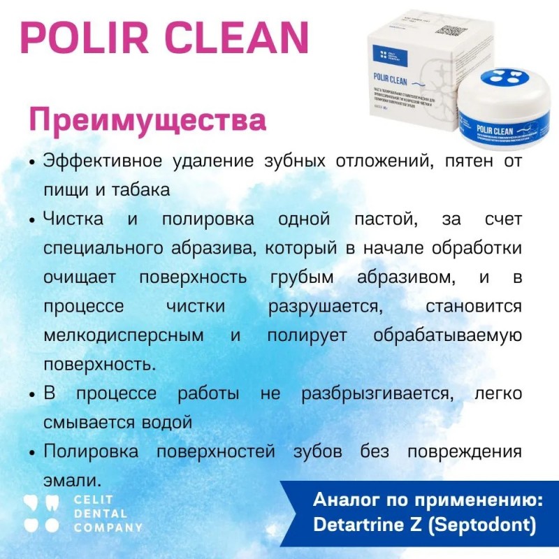 Эффективное удаление зубных отложений, пятен от пищи и табака.
