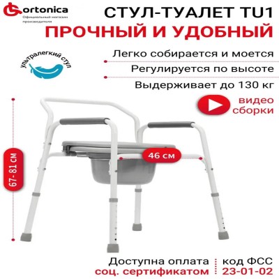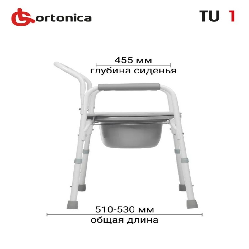 Кресло инвалидное с санитарным оснащением Ortonica TU 1 - это базовый санитарный стул, оснащенный надежной стальной рамой и санитарным оснащением из прочного гигиенического пластика.
