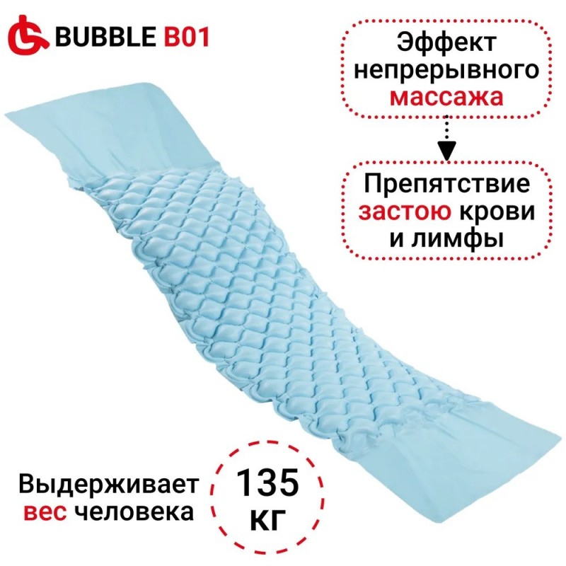 Противопролежневая система Ortonica Bubble B01 – предназначена для профилактики и лечения пролежней. Регулярное чередование воздуха в ячеистых секциях создает эффект непрерывного массажа и нормализует кровообращение.