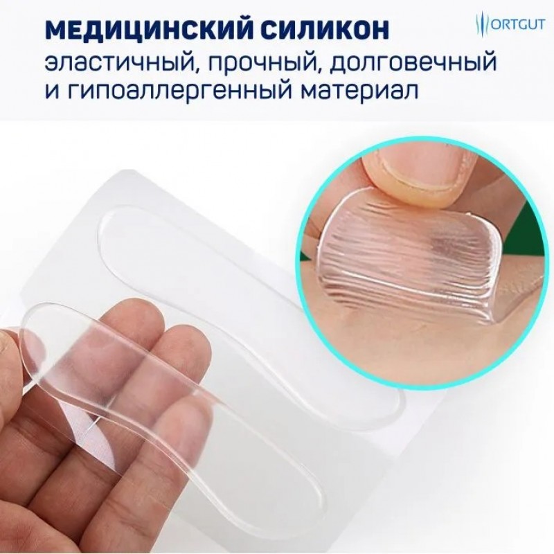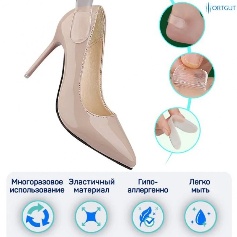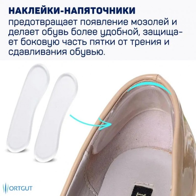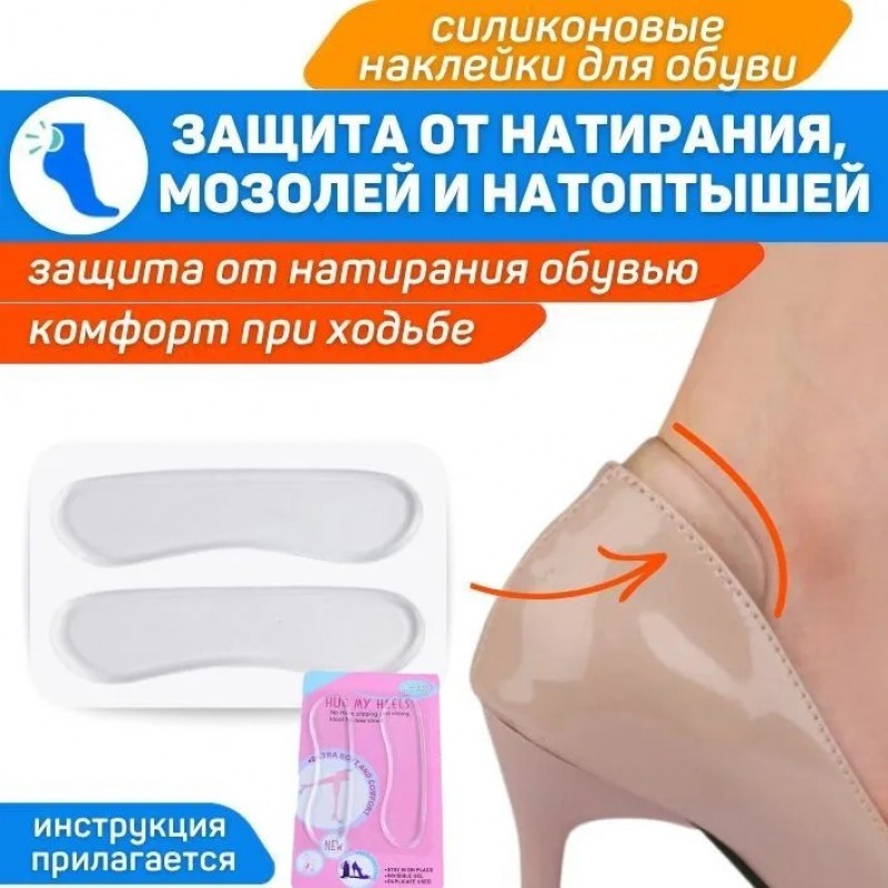 Силиконовые прозрачные напяточники для обуви - вкладка для фиксации пятки и защиты от натирания. Предотвращает появление мозолей, пяточной шпоры. Устраняет дискомфорт и боль, смягчает жесткий задник, корректирует размер обуви в сторону уменьшения. Силиконовые вкладыши в обувь используются при натирании пятки жестким или изношенным задником. Изделия уменьшают обувь на 1 размер, предотвращают скольжение стопы и появление натертостей, влажных и сухих мозолей, ахилловых пяточных шпор. Приспособления подходят для коррекции разной длины ступней, устраняют боль и дискомфорт в пятке при ношении модельной обуви. Пяткоудерживатели для защиты пятки от натирания предотвращают типичные травмы, вызванные ношением высоких каблуков у женщин: вывих, подвывих, растяжение голеностопа. Гелевые наклейки от натирания обуви устанавливаются к заднику при помощи клеящей основы. Напяточник облегает фронтальную часть пятки и защищает ее от трения и сдавливания жестким задником. Приспособления предотвращают скольжение ноги внутри обуви. Силиконовые вставки для обуви амортизирует удары и нагрузки при ходьбе, предотвращает истончение и статическую недостаточность пяточных фасций, которая приводит к появлению пяточной шпоры. Силикон, из которого изготовлен запятник, смягчает сухую кожу пяток, способствует размягчению имеющихся мозолей и устранению ороговевших участков. Подушечки корректируют размер обуви в сторону уменьшения, делая ее комфортной и безопасной. При применении накладок для уменьшения размера обуви снижается риск травм голеностопа, уменьшается нагрузка на суставы. Использование мягких самоклеящихся обувных полосок обеспечивает комфорт и защиту ваших пяток. Универсальные пяткоудерживатели силиконовые в заднюю часть обуви изготовлены из 100% медицинского силикагеля. Материал обладает амортизирующими свойствами, гипоаллергенный, износоустойчивый. Соответствует гигиеническим нормам. Достоинства: прозрачные, незаметные в обуви; универсальный размер от 36 до 44; подходят для мужчин и женщин; используются с любой обувью с закрытым задником; надежно фиксируются с помощью клеевого слоя; легко моются, подходят для многоразового применения. Комплектация: 1 пара (2 шт.)