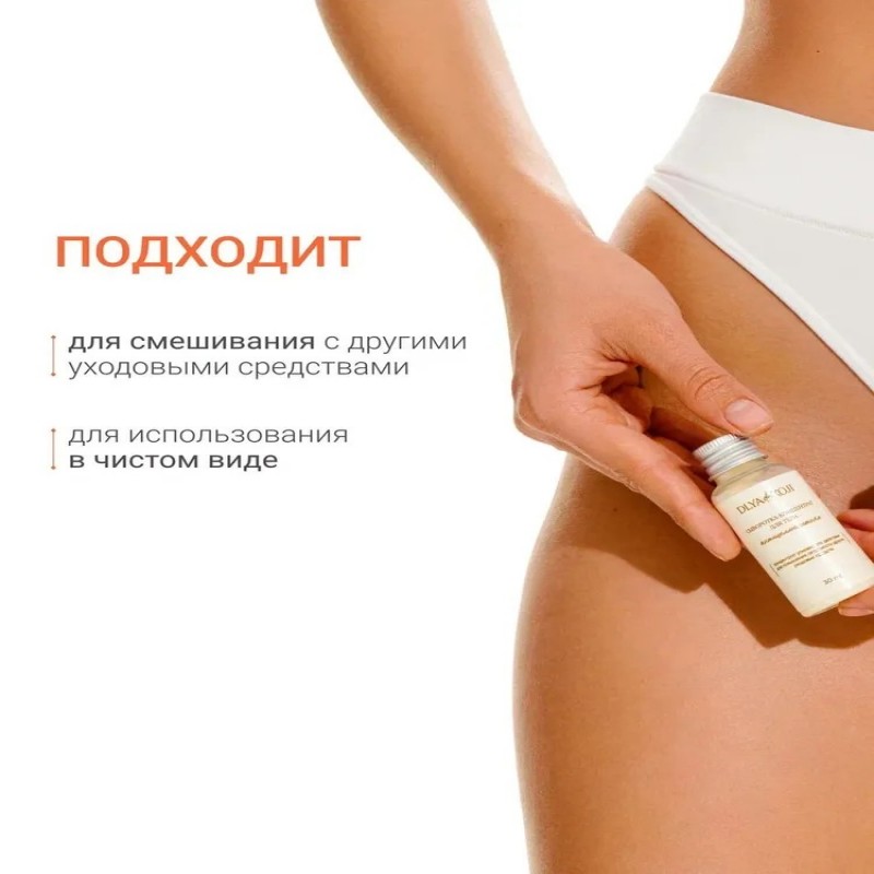 Для повышения активности действия уходовых средств: • Добавьте несколько капель в разовую порцию крема, молочка или скраба для тела • Равномерно распределите получившуюся смесь по проблемным зонам Подходит для ежедневного применения 1-2 раза в день. Для использования в чистом виде: • Массажными движениями распределите достаточное количество средства по проблемным зонам, избегая попадания на слизистые Используйте 2-3 раза в неделю, 1 раз в день. Противопоказания: • Не используйте средство в период грудного вскармливания до 6-месячного возраста ребёнка • Не применяйте на коже лица, шеи и в зоне декольте • Избегайте попадания на слизистые • Не наносите на кожу с ранами и воспалениями • Не используйте во время беременности в чистом виде Противопоказано людям, имеющим следующие заболевания: • Сердечно-сосудистые заболевания • Болезни вен • С заболеваниями ЦНС Возможна индивидуальная непереносимость компонентов. Перед использованием рекомендуем провести аллерготест — нанесите небольшое количество средства на сгиб локтя на 30 минут, наблюдайте за реакцией кожи.