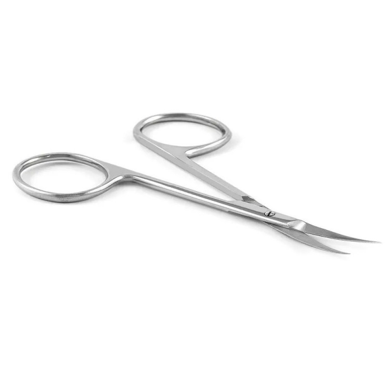 Профессиональные ножницы для кутикулы с ручной заточкой с загнутым кончиком – длина лезвий 22 мм.