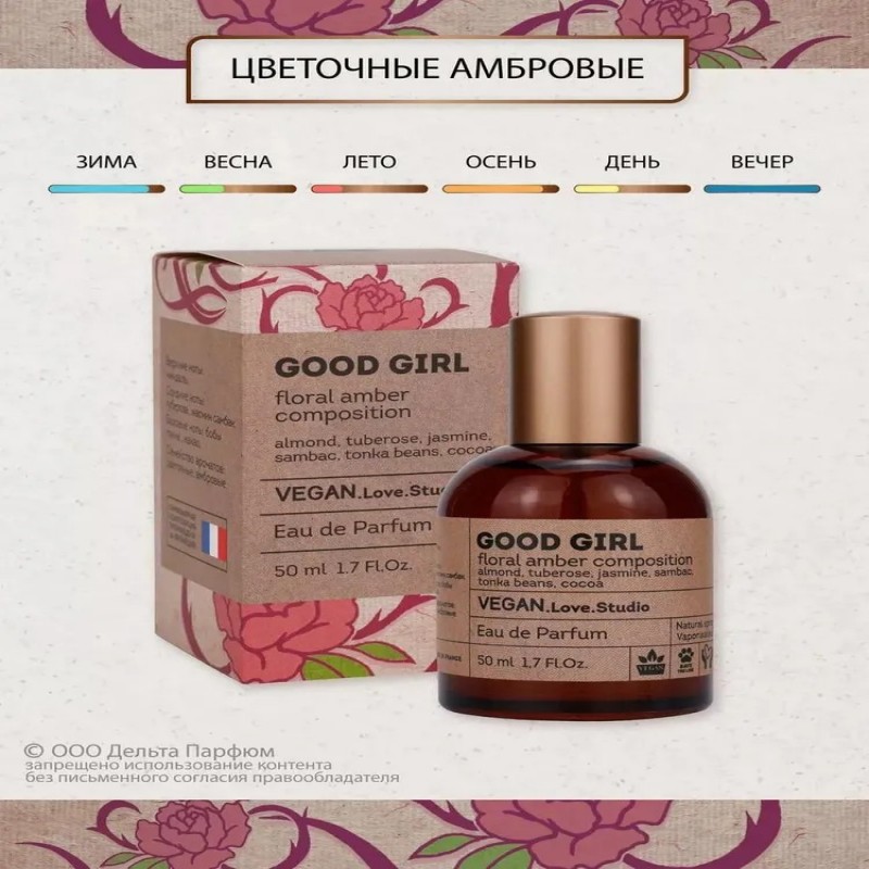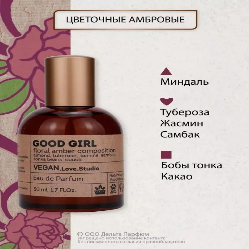 Парфюмерная вода женская, духи VEGAN.Love.Studio Good Girl, 50 мл.