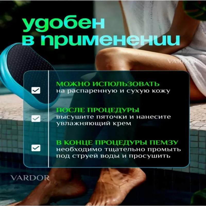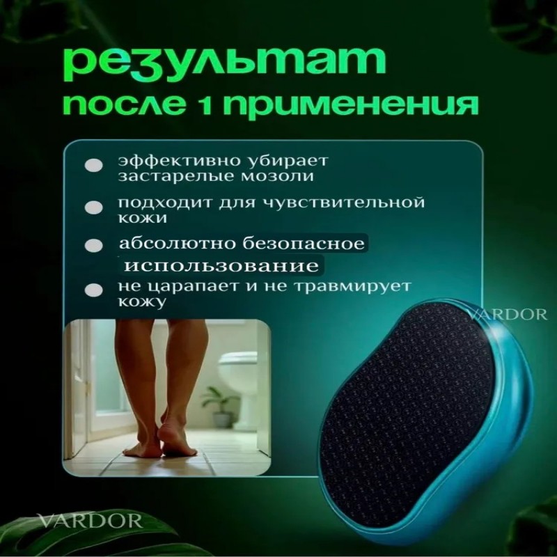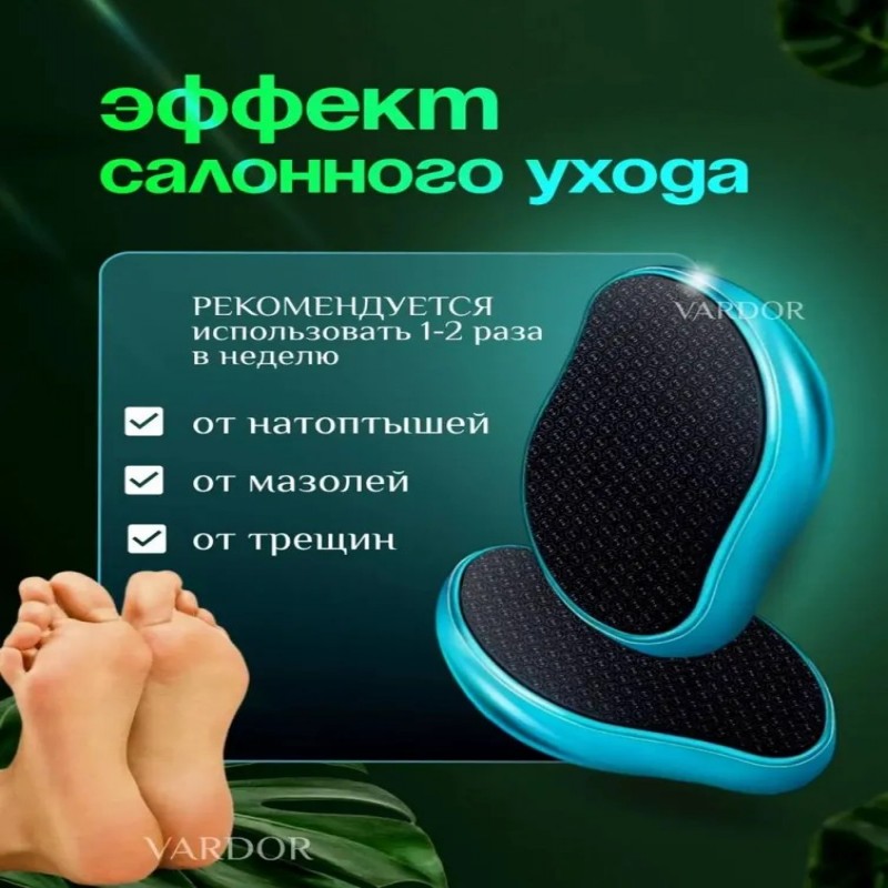 Педикюрная нано терка для пяток сделает кожу ваших пяточек ухоженной, гладкой, нежной всего за 1 минуту.Безопасная шлифовальная пилка НОВОГО ПОКОЛЕНИЯ с нано-стеклом обеспечивает деликатный уход за пятками, сравнимый с профессиональным педикюром.Действующая поверхность лазерной терки для ног оснащена нано зубцами, расположенными густо, что позволяет эффективно, безопасно и абсолютно безболезненно удалить мозоли, трещины и натоптыши.В отличие от обычных пемз, лазерная терка справится даже с самыми проблемными пяточками, уберет самые загрубевшие участки кожи стоп, не травмируя кожу.Скребок для пяток ног предназначен для профессиональной и самостоятельной обработки пяток. Пензу для ног можно использовать и на влажной коже, но при сухих условиях эффект будет лучше; после использования рекомендуется нанести гель-алое или любой крем для ног или средство для пяток.Педикюрная нано терка для в отличие от лазерных терок не травмирует кожу и не ржавеет. Стеклянная терка для пяток имеет щадящие свойства, не травмируя живые ткани бережно удаляет ороговевшие клетки эпидермиса. Сама терка для ног легко очищается, её достаточно промыть под струей воды.Рекомендуется использовать не чаще одного раза в неделю. Подходит для мужчин и женщин. Благодаря удобной форме, инструмент приятно держать в руке, компактный размер позволяет брать терку с собой в поездки. Терка для ног отличный подарок для женщин, девушек и бабушек как вложение в бьюти-бокс или подарочный набор. В результате: здоровые, ухоженные стопы с гладкой и мягкой кожей без заусенцев в любое время и в любом месте.