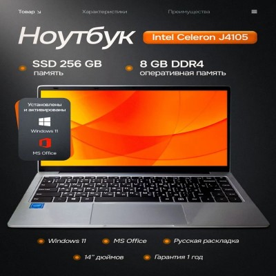 TIMIOGROUP для работы и учебы Ноутбук 14", Intel Celeron J4105, RAM 8