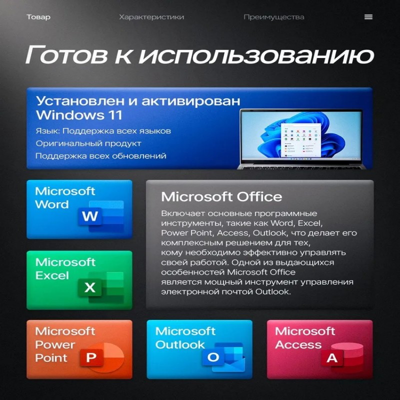КомплектацияНоутбук Зарядное устройство Инструкция и аннотация Установленный Windows 11 Pro Пакет установленных программ Фирменная коробка