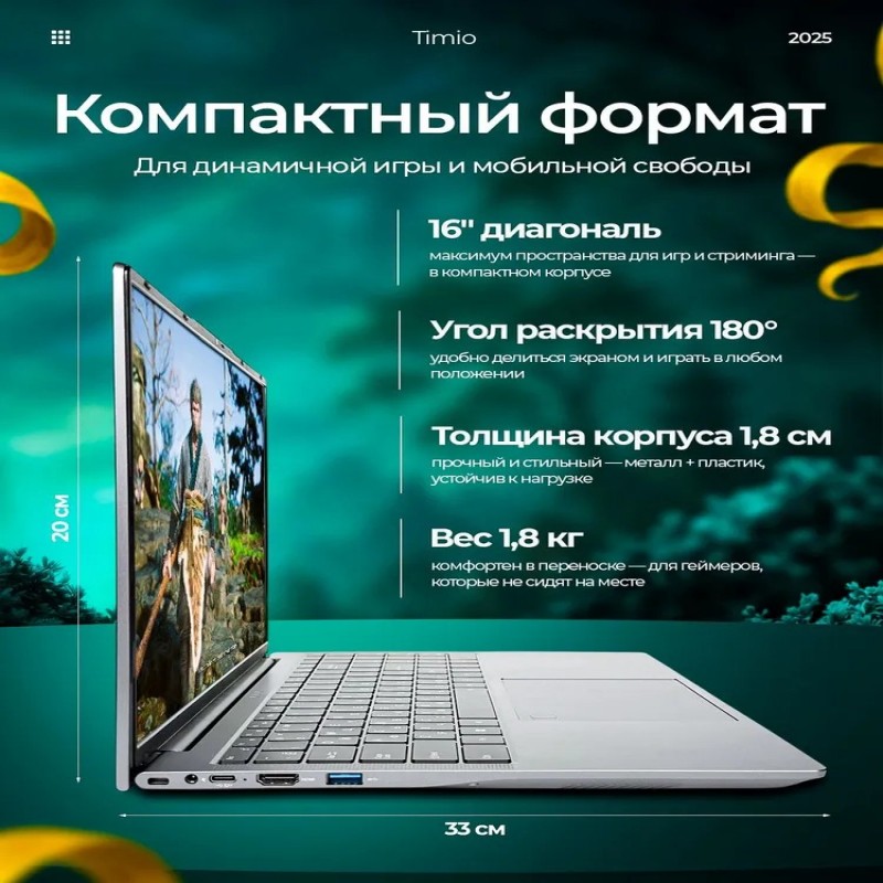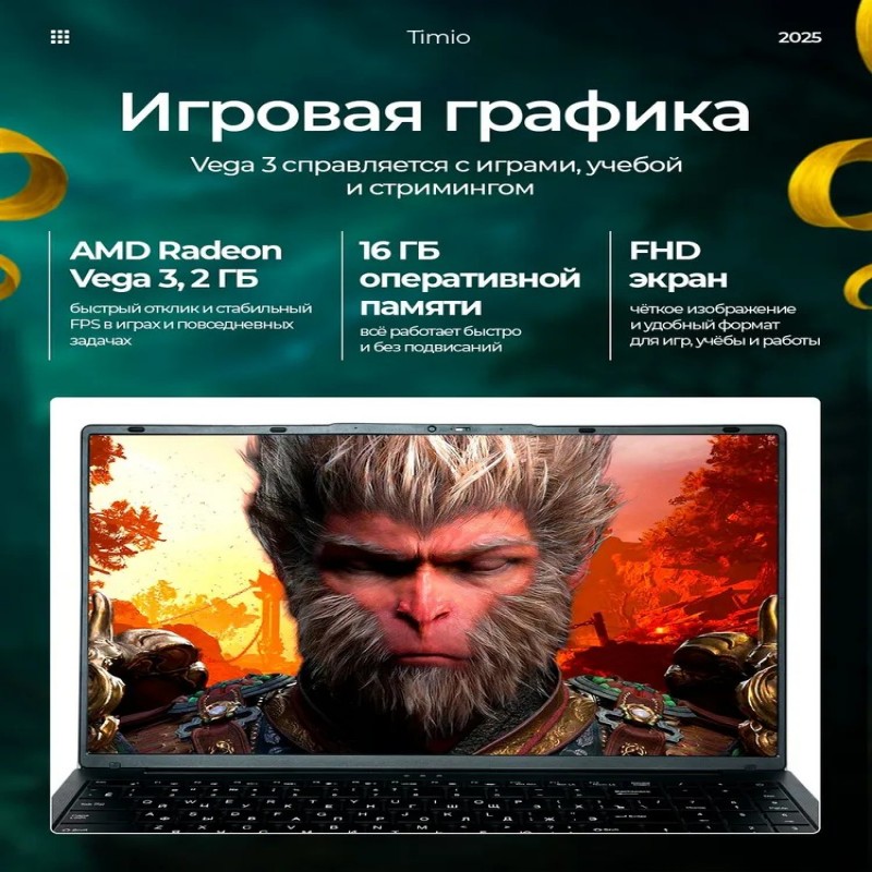Timio для работы и учебы, игровой Ноутбук 16", AMD Ryzen 3 3250U, RAM