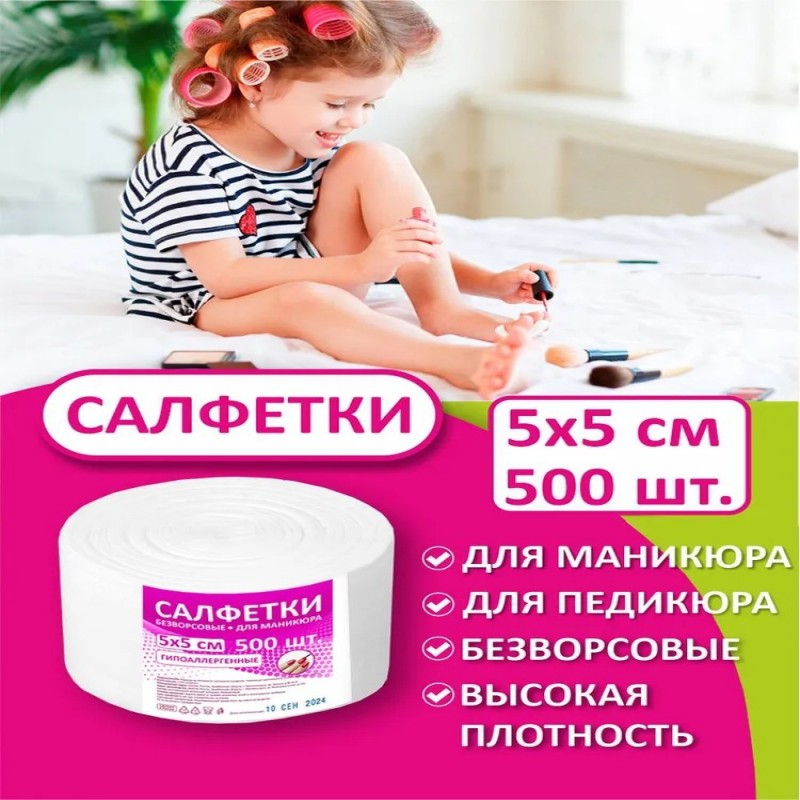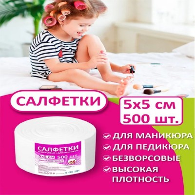 Универсальные одноразовые впитывающие безворсовые салфетки для маникюра — идеальный выбор для профессионалов и домашнего использования. Они представлены в рулоне с размером 5х5 см и содержат 500 штук, что обеспечивает длительное использование. Высовая плотность материала составляет 35 г/м2, что гарантирует отличную впитываемость и долговечность.