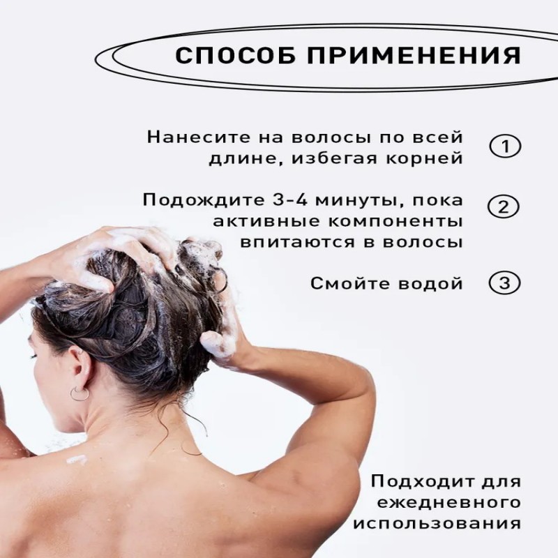 1. Равномерно нанесите достаточное количество бальзам на чистые влажные волосы; 2. Распределите по всей длине, отступая от корней 1-2 см; 3. Оставьте кондиционер на 3-5 минут, затем смойте теплой водой; *Подходит только для наружного применения. Избегайте попадания в глаза.