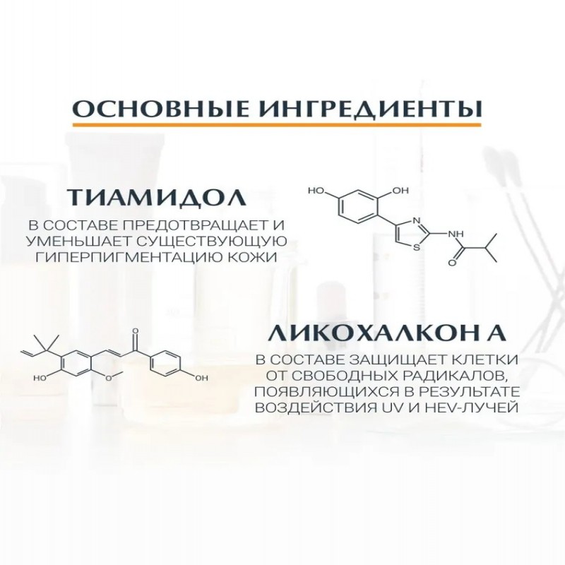 Aqua, C12-15 Alkyl Benzoate, Alcohol Denat. (7,49% об.), Butyl Methoxydibenzoylmethane, Ethylhexyl Triazone, Butylene Glycol Dicaprylate/Dicaprate, Bis-Ethylhexyloxyphenol Methoxyphenyl Triazine, Dibutyl Adipate, Glyceryl Stearate Citrate, Silica, Phenylbenzimidazole Sulfonic Acid, Diethylamino Hydroxybenzoyl Hexyl Benzoate, Tapioca Starch, Silica Dimethyl Silylate, Cetearyl Alcohol, Behenyl Alcohol, Isobutylamido Thiazolyl Resorcinol (Thiamidol), Glycyrrhiza Inflata Root Extract, Glycyrrhetinic Acid, Tocopheryl Acetate, Glycerin, Copernicia Cerifera Cera, Xanthan Gum, Carrageenan, Hydroxypropyl Methylcellulose, Sodium Hydroxide, Trisodium EDTA, Hydroxyacetophenone, Phenoxyethanol, Ethylhexylglycerin, Parfum