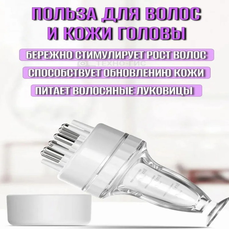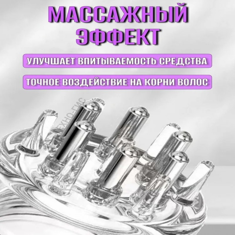 • Стимуляция кровообращения: массажные движения аппликатора способствуют активизации кровообращения в коже головы, способствуя росту волос и придавая им сияние и блеск