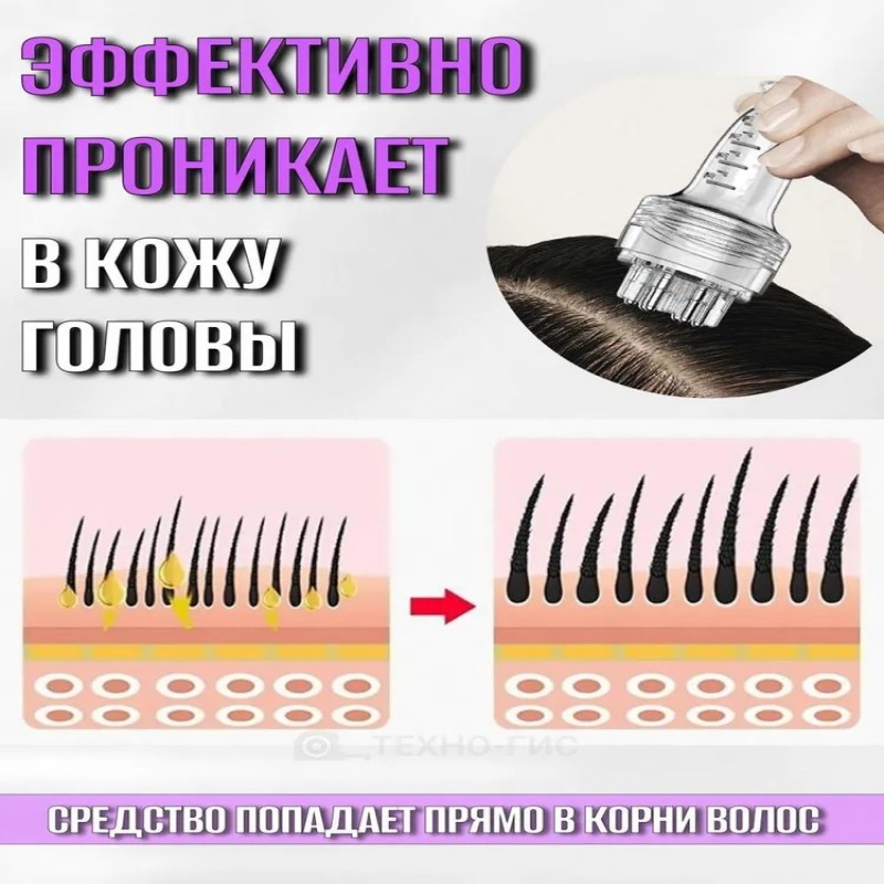 С помощью этого аппликатора вы сможете равномерно распределить масло или сыворотку по всей поверхности кожи головы, достигая даже самых труднодоступных мест. Аппликатор не травмирует кожу и не повреждает волосы, делая процесс нанесения максимально комфортным.
