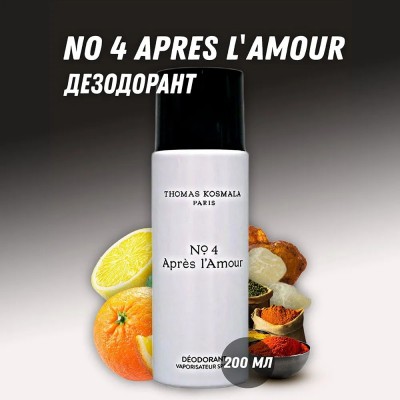 Знаете, что остается в воздухе после того, как сердца двух людей навеки покинула любовь? Благородный и максимально сдержанный унисекс аромат № 4 Apres L'Amour в красках рассказывает нам о том, что происходит “после любви”. Лаконичность и элегантная простота стала синонимами внешнего дизайна парфюмерных флакончиков нишевого французского бренда. Его создатель принял смелое решение не перенасыщать восприятие поклонников изысканными линиями и массивными флаконами и дать возможность заглянуть глубоко внутрь самой парфюмерной формулы. Внутри него скрывается настоящая эмоциональная феерия чувств, призванная рассказать окружающим о взаимной симпатии, которая перерастает в искреннюю любовь. Романтичные мечтательные натуры по достоинству оценят выразительную парфюмерную пирамидку очаровательного древесно-фужерного запаха, максимально деликатного и ненавязчивого по своей натуре. Звонкая освежающая мелодия унисекс парфюма идеально заиграет в теплое время года, особенно днем. Картина составлена из традиционных цитрусовых нот, представленных союзом лимонной цедры и зеленого сока листьев горького апельсина. Сердце треугольника представлено насыщенным букетом восточных специй и свежих аккордов. Легкий воздушный шлейф No 4 Apres L'Amour не лишен европейского благородства и звучит на теле ансамблем древесных нот вперемешку с амброво-мускусными вкраплениями.
