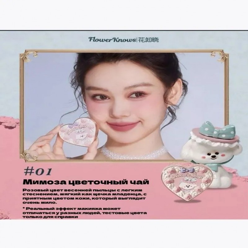 Добро пожаловать в сказочный мир Flower Knows! Представляем вам **милые сердечные румяна**, украшенные забавными пёсиками и нежными оттенками – это не просто косметика, а **вдохновляющее маленькое чудо** для вашего макияжа!