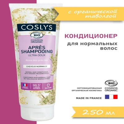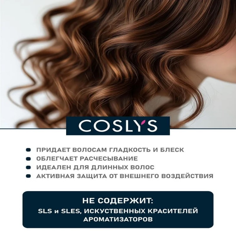 100% натуральный кондиционер COSLYS облегчает расчесывание без утяжеления волос. Его насыщенная формула, обогащенная органическим соком алое и маслом жожоба, делает волосы более гладкими и придает им блеск. Кондиционер активно увлажняет и защищает от внешних воздействий. Идеален для длинных волос. Результат: волосы мягкие и послушные. Натуральность и безопасность продукта подтверждена международным стандартом ECOCERT.