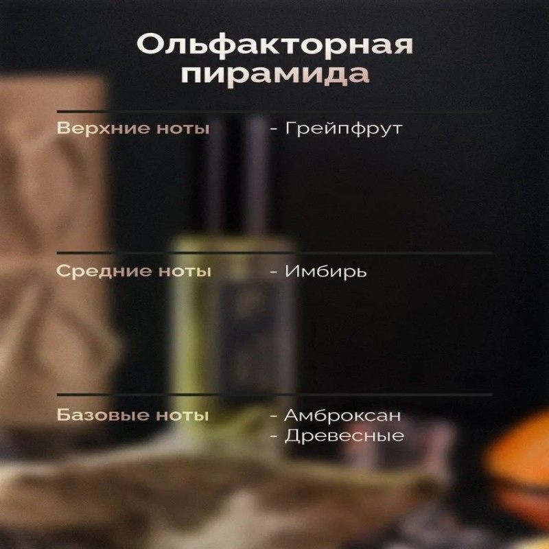 В сердце этой композиции расцветает яркий и сочный аромат розового грейпфрута, который мгновенно захватывает внимание и создает эффект свежести. В нем можно уловить легкую кислинку и сладость, которая придает аромату игривость и жизнерадостность. Однако главная изюминка - это запах древесины. Он сложен и глубок, звучит как роскошный букет из самых изысканных древесных оттенков. В нем можно уловить ноты сандалового дерева, кедра и пачули, которые создают впечатление крепости и мужественности. В этом аромате также присутствует тонкий запах перца, который придает ему элегантность и изысканность.
