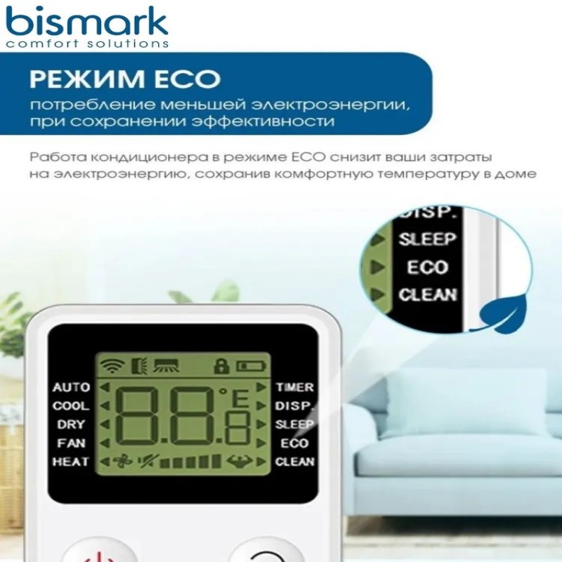 ВЫСОКАЯ ЭНЕРГОЭФФЕКТИВНОСТЬ. Сплит-системы Bismark имеют класс энергоэффективности А в соответствии с законодательством России, стран EAС и законодательством Европейского Союза.