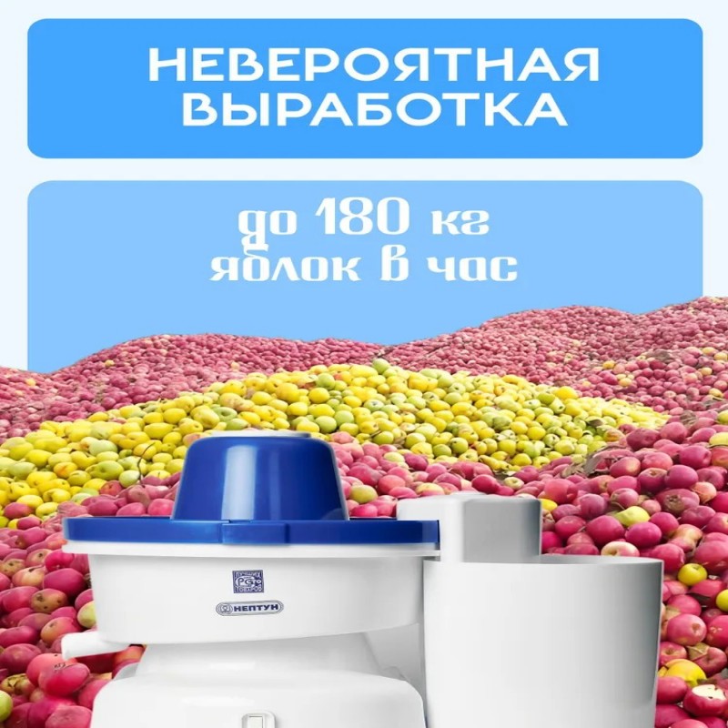 Соковыжималка «Нептун» КАЖИ.332215.001-09 — мощная садовая модель российского производства для дачников и заготовок на зиму. Перерабатывает до 180 кг яблок/час, выдавая до 60 л сока/час. Оснащена широкой горловиной для цельных плодов и надежным двигателем 300 Вт. Устойчивая, простая в использовании и обслуживании. Отлично подходит для отжима яблок, томатов, ягод, моркови и других овощей и фруктов.Мы — производитель. Гарантируем качество и техническую поддержку.
