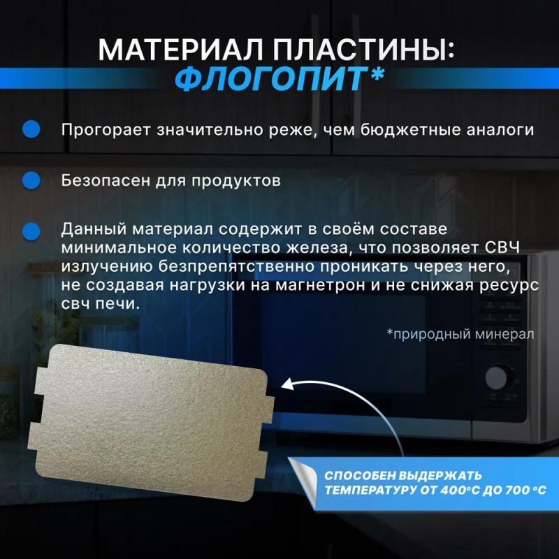 Слюдяная пластина - важный расходный материал для безопасной и эффективной работы микроволновой печи. В нашем ассортименте Вы сможете найти подходящий для Вашей модели универсальный размер или самостоятельно вырезать необходимую форму.