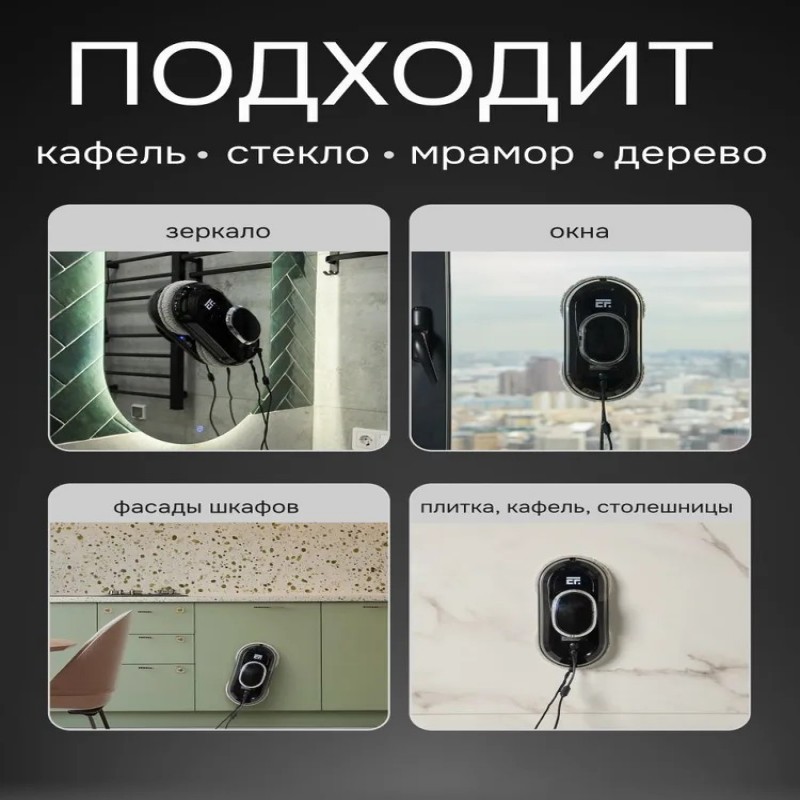 Каждый робот мойщик ELFARDI сочетает в себе стильный дизайн и передовые технологии. Они не только эффективно очищают стеклянные и кафельные поверхности, но и делают это с элегантностью. Благодаря имитации движений рук, робот мойщик обеспечивает идеальный блеск без царапин и повреждений.