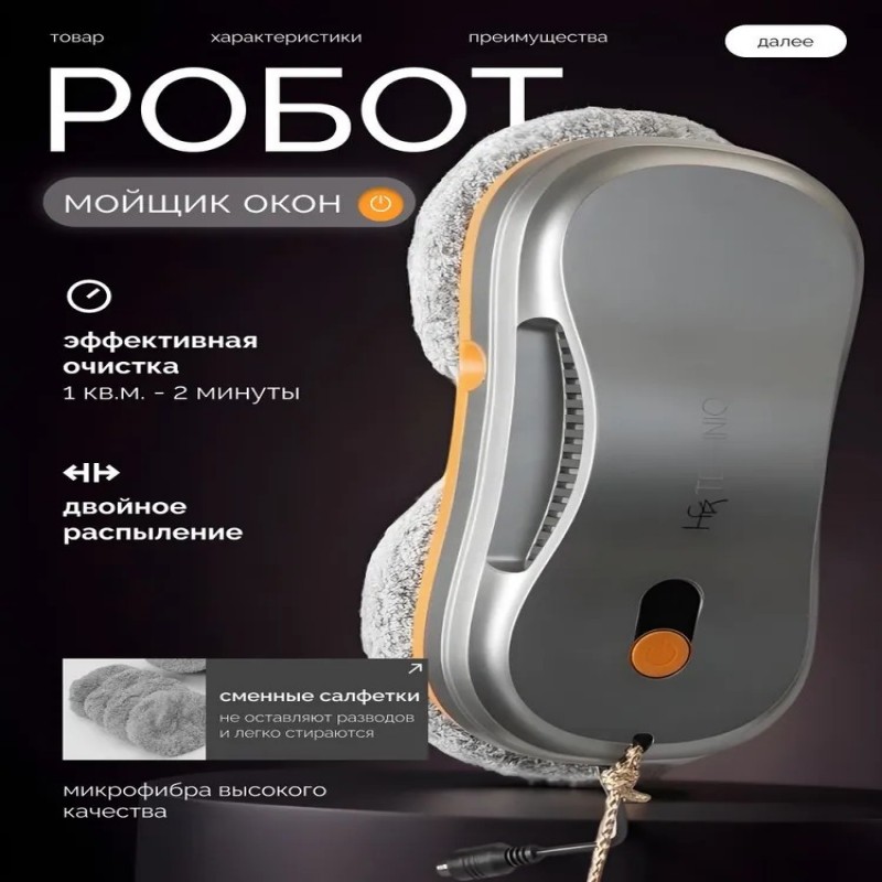 Робот мойщик окон с распылением W21S Flybot со сменными салфетками 10