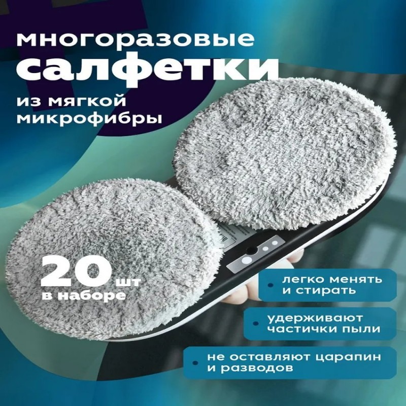 Сменные чистящие салфетки из микрофибры эффективно удаляют даже сложные загрязнения, не оставляя царапин. После уборки их можно легко постирать вручную или в стиральной машине. В комплекте есть целых 20 таких салфеток.