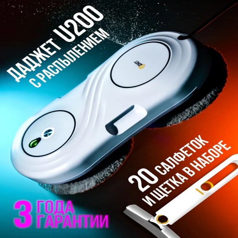 Робот мойщик окон c распылением Даджет U200, тонкий со сменными салфет