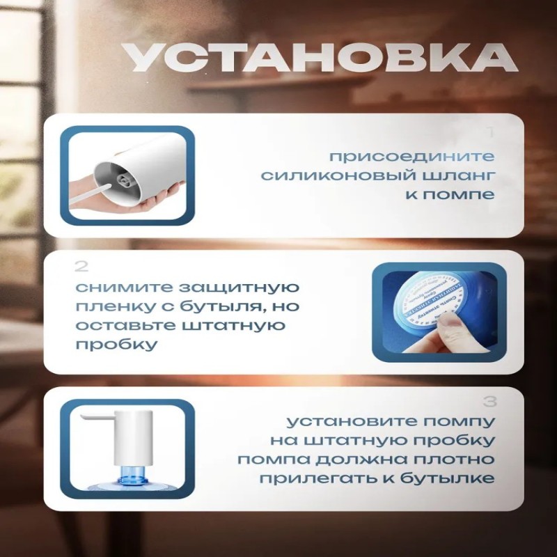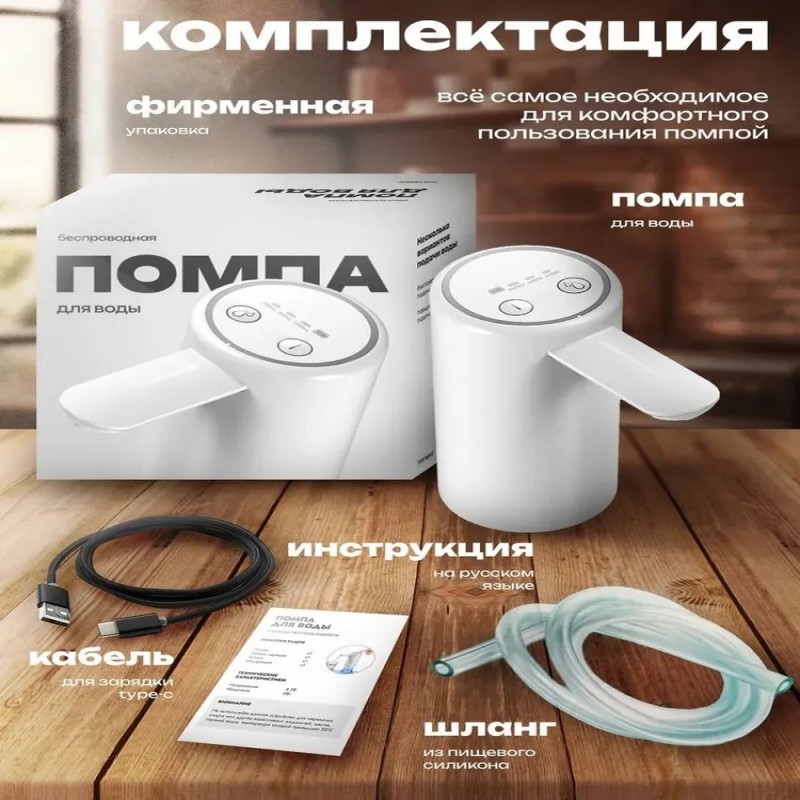 Комплектация️ Помпа для воды ️ Кабель для зарядки Type-C ️ Трубка ️ Инструкция