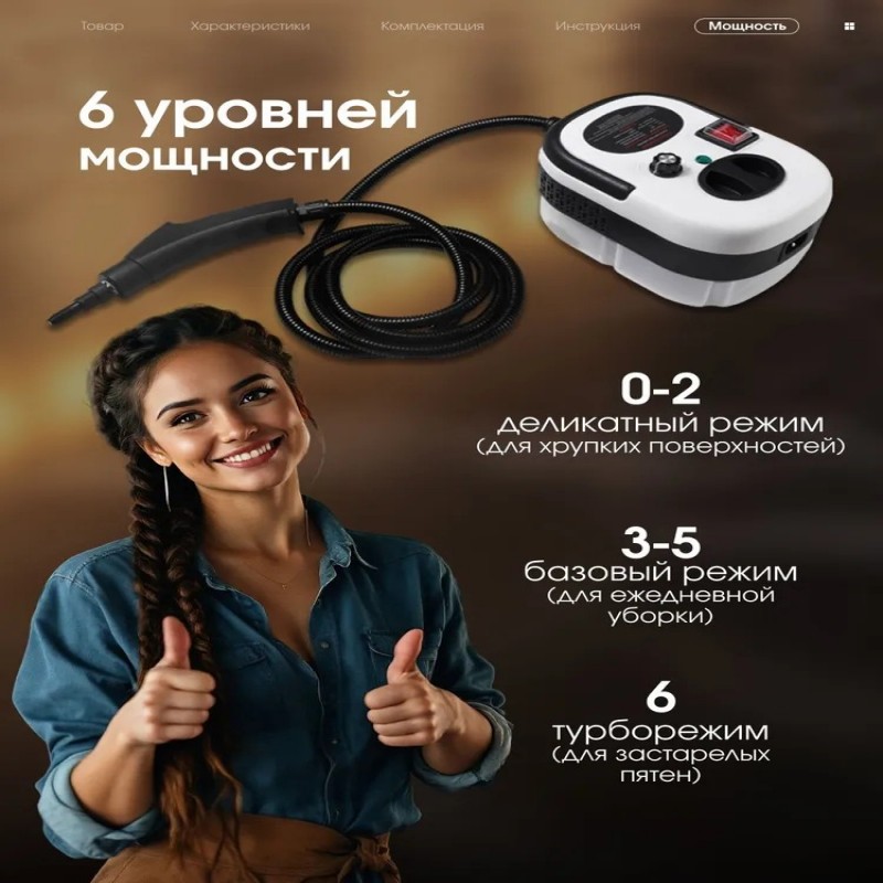 Пароочиститель 2500 Вт, для уборки дома мощный