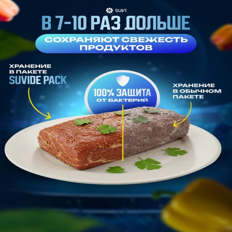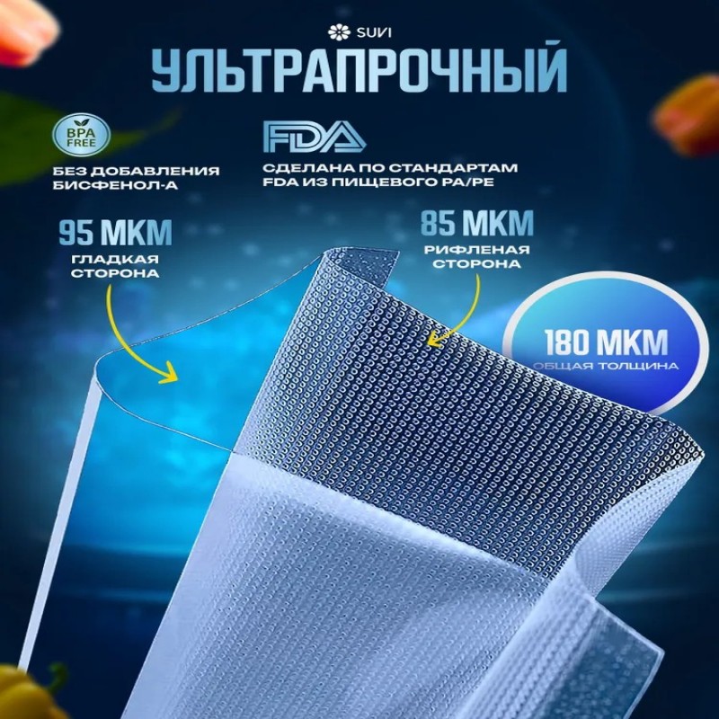 СоставПищевой полиэтиленКомплектацияПакеты для вакууматора