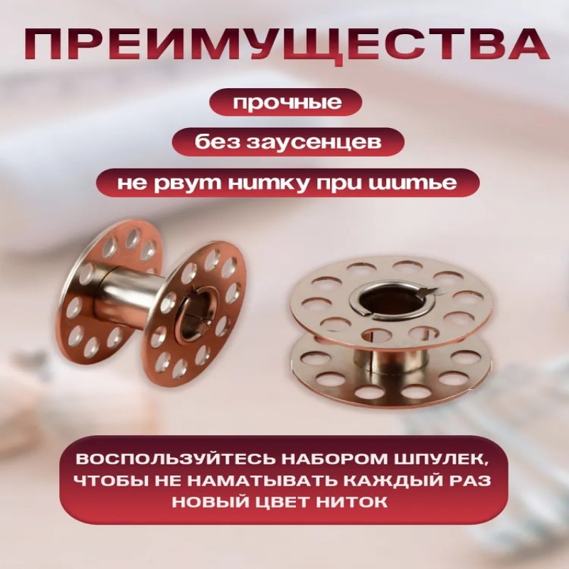 Эти шпульки идеально подходят для большинства моделей швейных машин, что делает их универсальным решением для швейного оборудования.