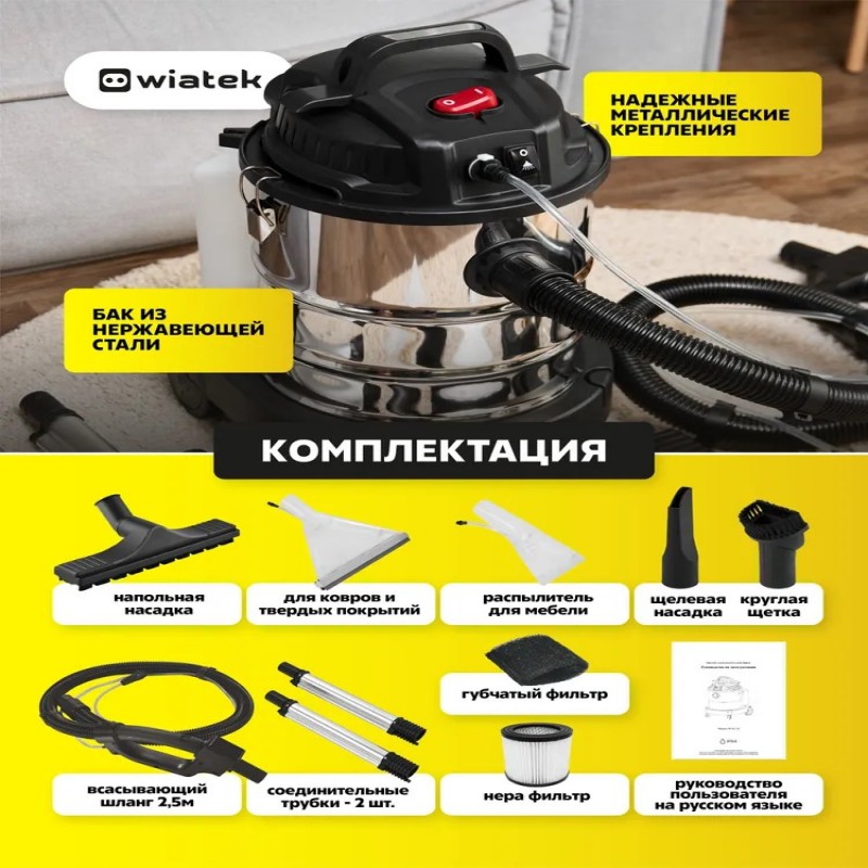 Моющий бытовой пылесос Wiatek WL112 для дома и химчистки, мощность 120