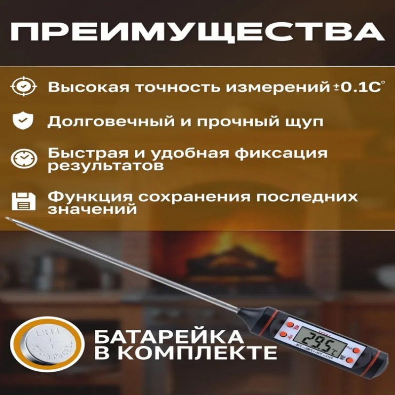 Кулинарный термометр, с щупом 15 см. Кухонный термометр для приготовле