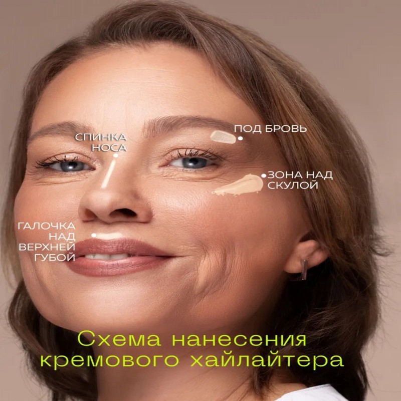 Нанесите хайлайтер на следующие участки лица: