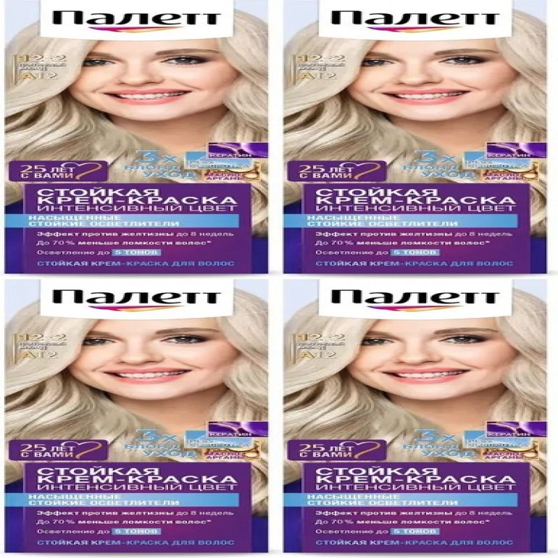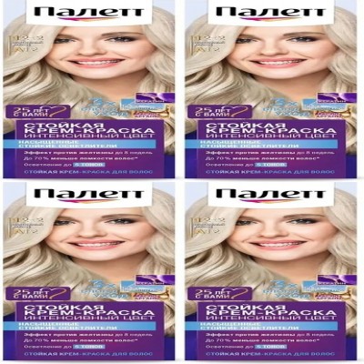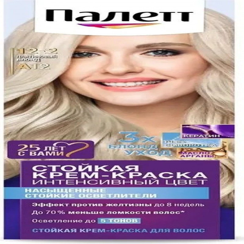 Интенсивный осветлитель с эффектом против желтизны. Уход за блондом во время и после окрашивания. Специально разработанные окрашивающие пигменты холодных тонов проникают глубоко внутрь волоса для эффекта против желтизны до 8 недель. Для стойкого насыщенного цвета и осветления до 5 тонов. Формула и маска-уход с тройной системой ухода с кератином, пантенолом и nutri-маслом обеспечивают бережную заботу о волосах. Palette укрепляет, разглаживает волокна волос и наполняет их цветом для роскошного стойкого оттенка. Эффект против желтизны до 8 недель. До 70% меньше ломкости волос. Осветление до 5 тонов.