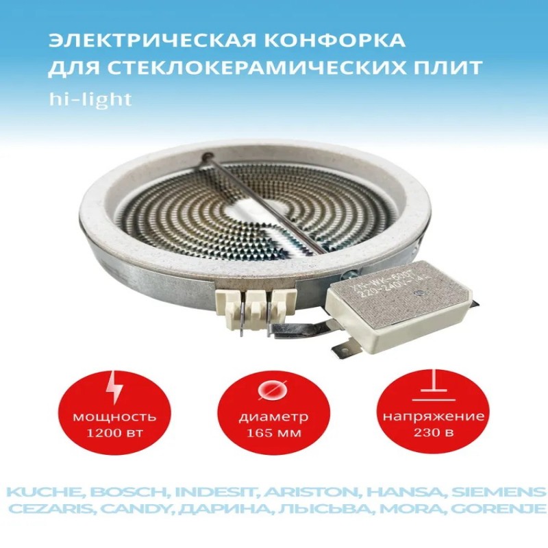 Конфорка электрическая HiLight стеклокерамики 1200W 230V D 165 мм